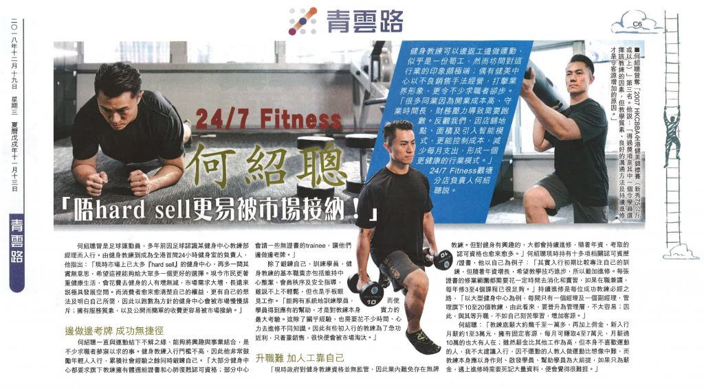 Special thanks to《Apple Daily – ecjobs》for their interview with our club manager – Chung Ho. He shares market information of the fitness industry and career prospects of personal trainers.