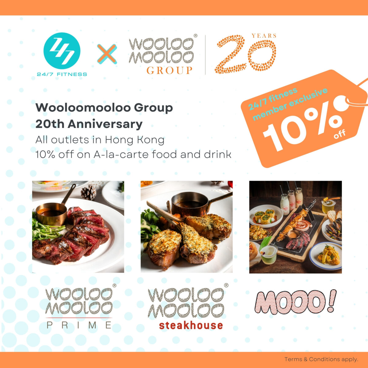 Wooloomooloo Group 20th Anniversary – All outlets in Hong Kong 10% off on A-la-carte food and drinks menu